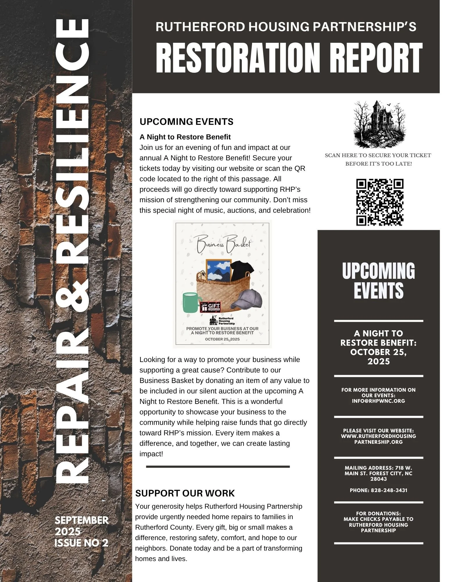 Join us for A Night to Restore Benefit: An unforgettable evening featuring costume contests, live & silent auctions, delicious hors d’oeuvres, a DJ, and more! All proceeds go toward providing urgently needed home repairs for low-income homeowners in Rutherford County.
